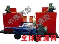 主泵用来输送已加入促凝剂的水。辅泵用来输送液态纯胶(如水玻璃)。这两种液料经各自的输送胶管输送到混合器中均匀混合后,经三个出液口送出。根据各料的配比不同,这种液态的高水胶料混合液可在30~400秒内形成固态胶体,用于煤矿灭火和防火。