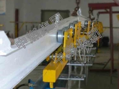 单轨吊是用于煤矿综采工作面顺槽电缆、乳化液高压胶管和水管的吊挂与移动的专用运输装置。在综采工作面运输巷道一侧的顶板下,利用锚杆和链条吊挂悬空轨道,拖运车将所有电缆和高压胶管、水管都吊挂在上面,利用工作面乳化液泵站作动力,通过油缸和连杆组成的液压步进式推拉装置,实现电缆、高压胶管和水管沿着巷道吊挂和移动。该装置避免了井下电缆凌乱摆放,减少了电缆的占用空间与电缆的移动次数,避免了人工拖动电缆,极大地减少了工人的劳动强度和作业效率。